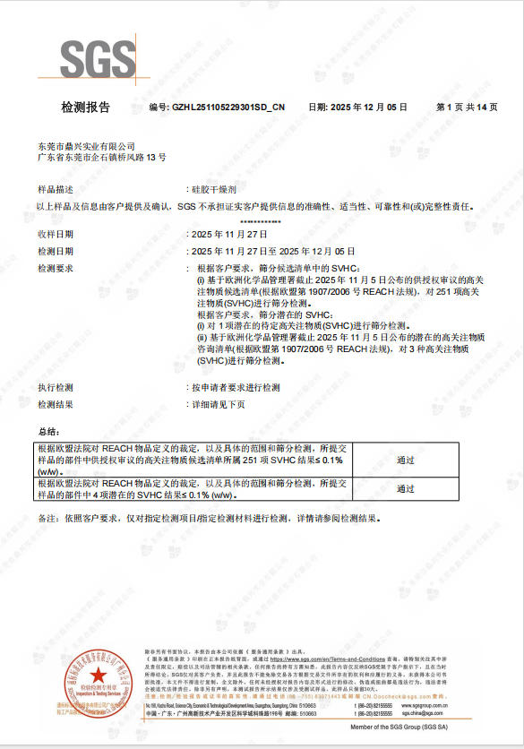 硅膠干燥劑REACH證書